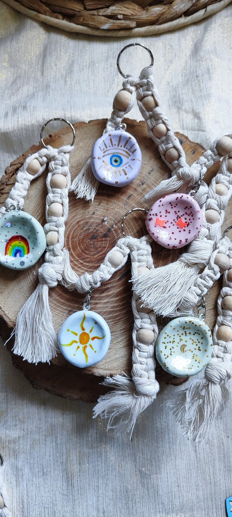 Accompagnée d'un joli porte-clés en macramé avec des petites perles en bois, c'est joindre l'utile à l'agréable !