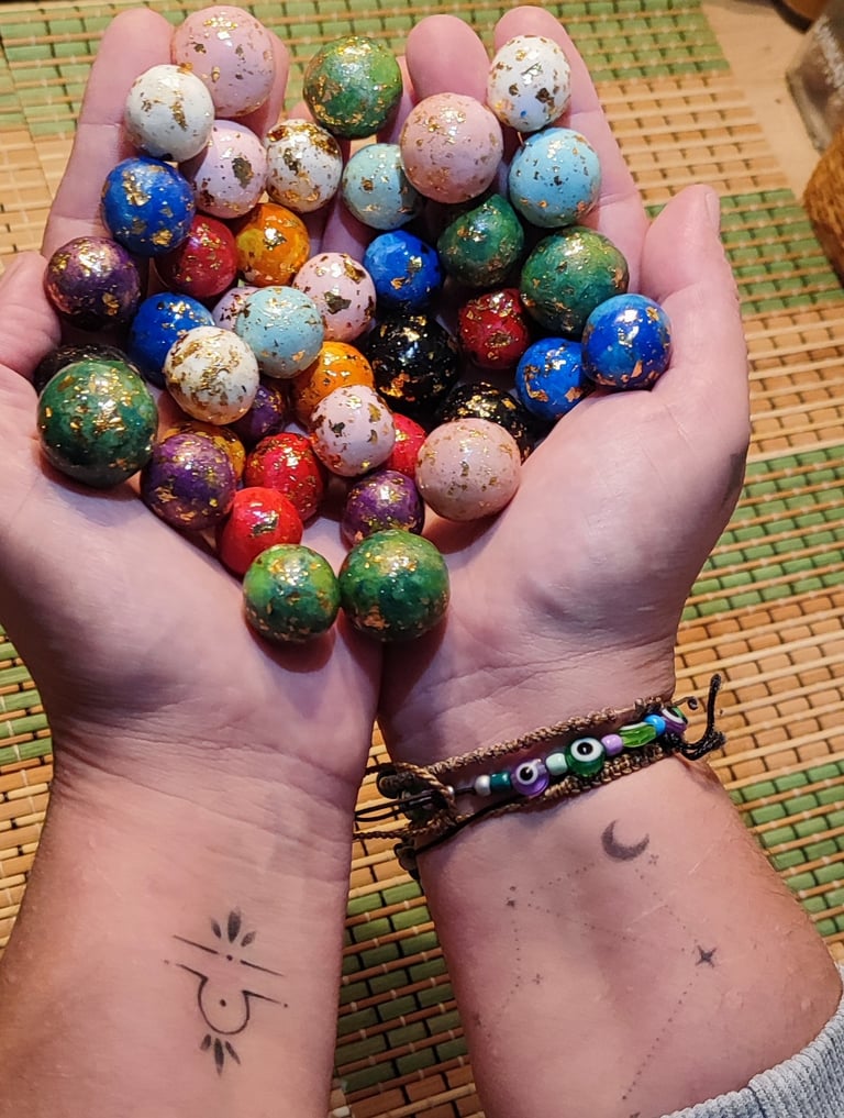 Dans le même principe que les pierres d'apaisement, les billes d'apaisement s'utilisent en les faisant rouler dans la paume de la main à l'aide de nos doigts et procure un réel sentiment de calme, d'apaisement et de bien-être!